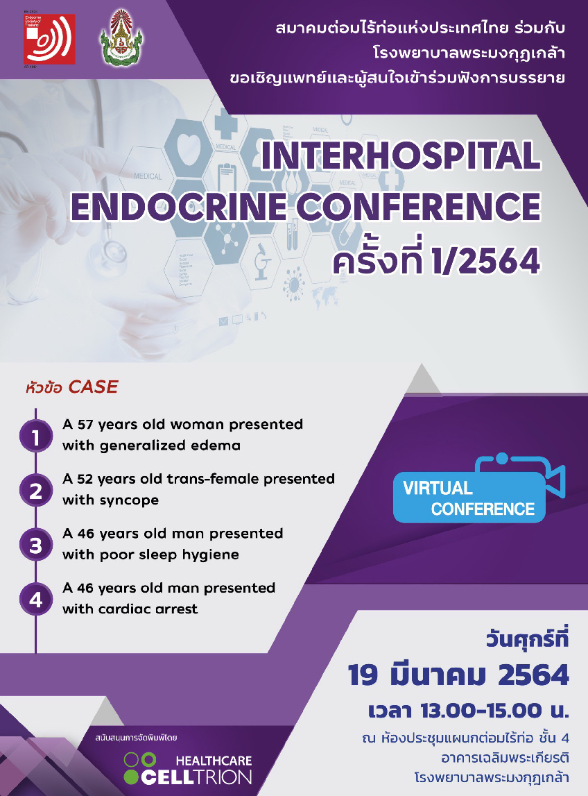 ขอเชิญประชุมวิชาการงาน Interhospital Endocrine Conference ครั้งที่ 1/2564