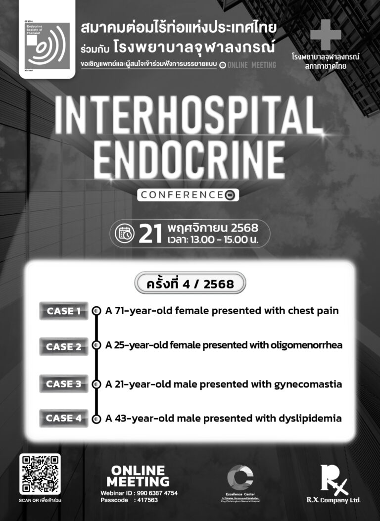 | Interhospital Endocrine Conference ครั้งที่ 4 | 20 พ.ย. 2569 | รพ.รามาธิบดี |