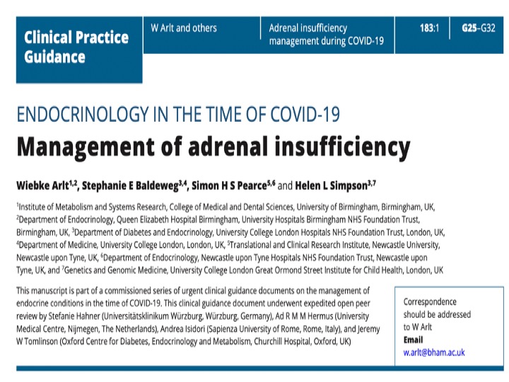ผู้ป่วยที่พบว่ามีภาวะ undiagnosed primary and secondary adrenal insufficiency ขณะติดเชื้อ COVID-19 พบว่ามีอัตราการตายสูงขึ้น ดังนั้นจึงต้องมีการรักษาให้ hormonal replacement ตาม stress อย่างเพียงพอ รวมไปถึงในผู้ป่วยที่ได้รับการวินิจฉัย adrenal insufficiency อยู่เดิมเพื่อป้องกันการเกิดภาวะ adrenal crisis